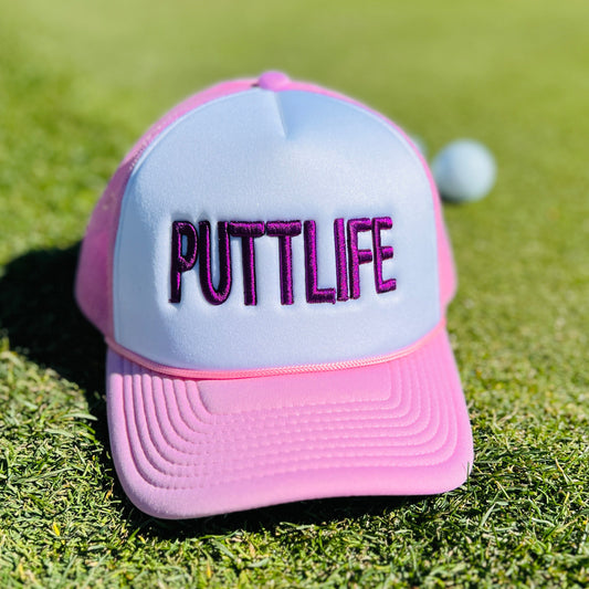 PUTTLIFE Foam Trucker Hat PINK / WHITE / PURPLE